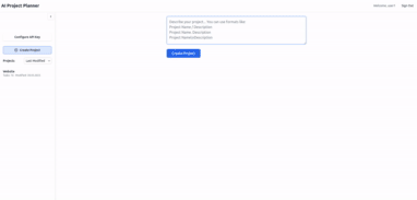 ## Functionality of the AI Project Planner, the code for which was completely implemented by Claude